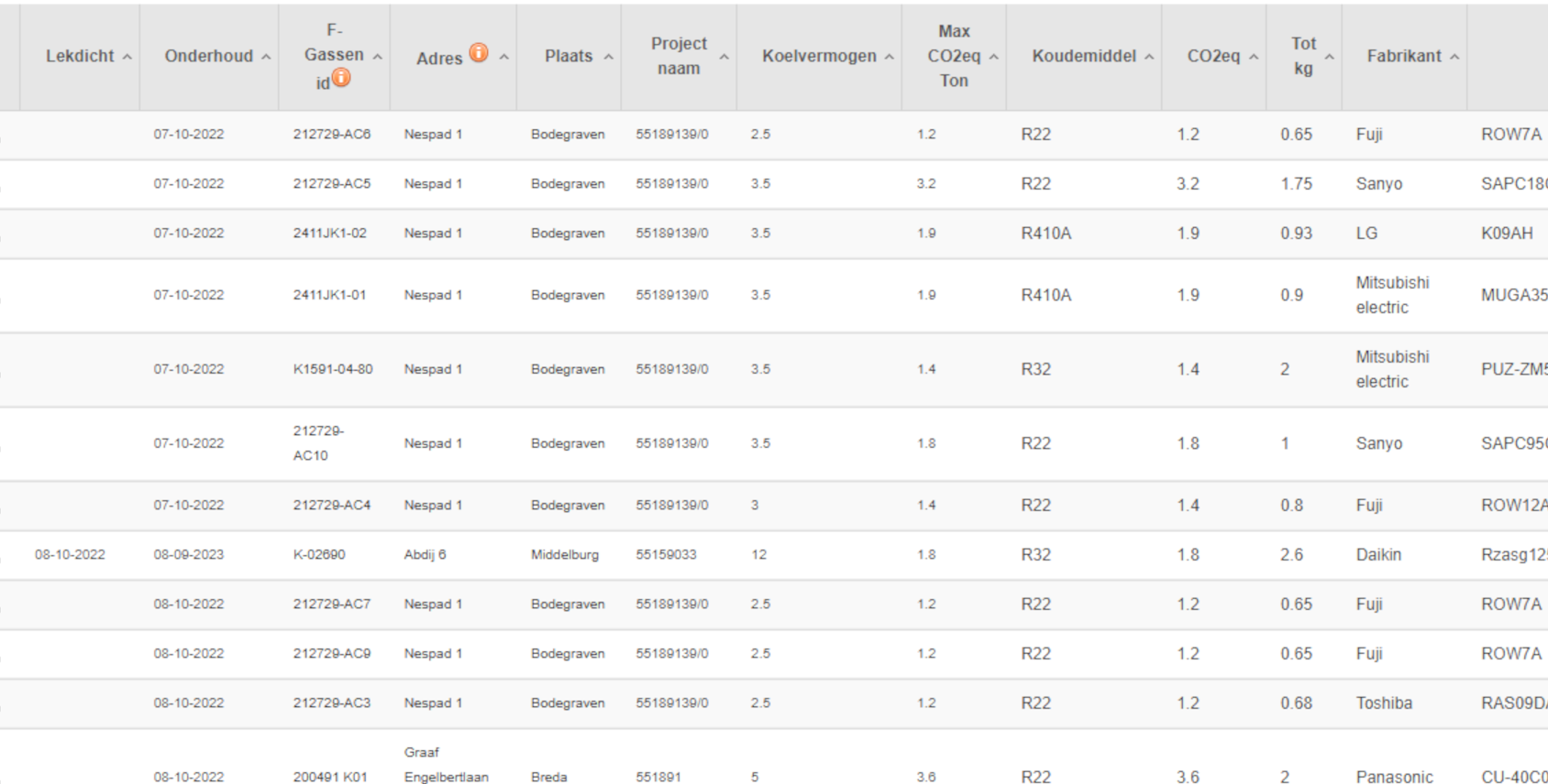 - Automatische omrekening naar CO2 equivalent en lekdichtheidscontrole interval